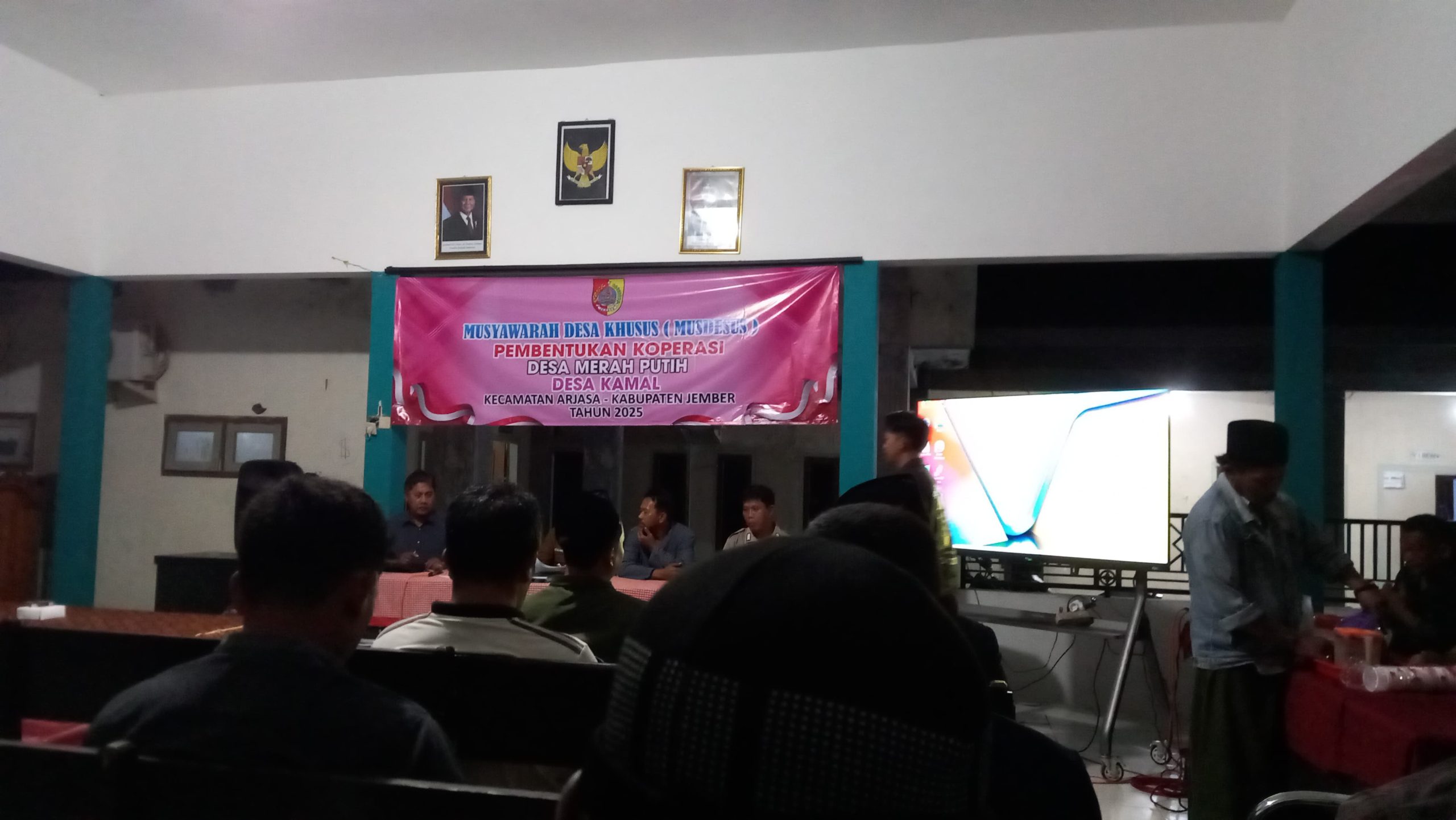 Jember – Pemerintah Desa Kamal sukses menyelenggarakan Musyawarah Desa (Musdes) pada hari Selasa, 06 Mei 2025, yang secara resmi membahas dan menetapkan susunan pengurus Koperasi Merah Putih secara final. Musdes ini menjadi tonggak sejarah, karena merupakan musyawarah desa pertama se-Kecamatan Arjasa yang khusus membahas pembentukan koperasi desa.