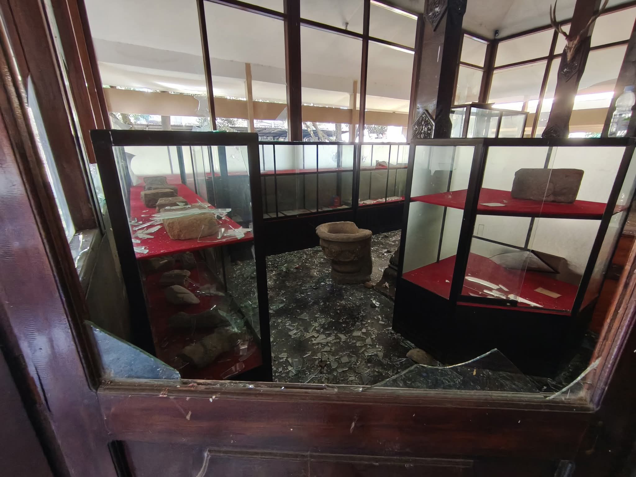 Menurut keterangan, sejumlah koleksi berharga hilang dijarah. Artefak yang raib antara lain fragmen Kepala Ganesha dan tiga koleksi wastra kain batik. Sementara itu, miniatur lumbung serta arca Bodhisatwa dilaporkan mengalami kerusakan serius. Kondisi ini membuat kalangan budayawan dan pemerhati sejarah menilai kerugian bukan hanya secara fisik, tetapi juga menyangkut hilangnya pengetahuan dan warisan budaya yang tak ternilai harganya.